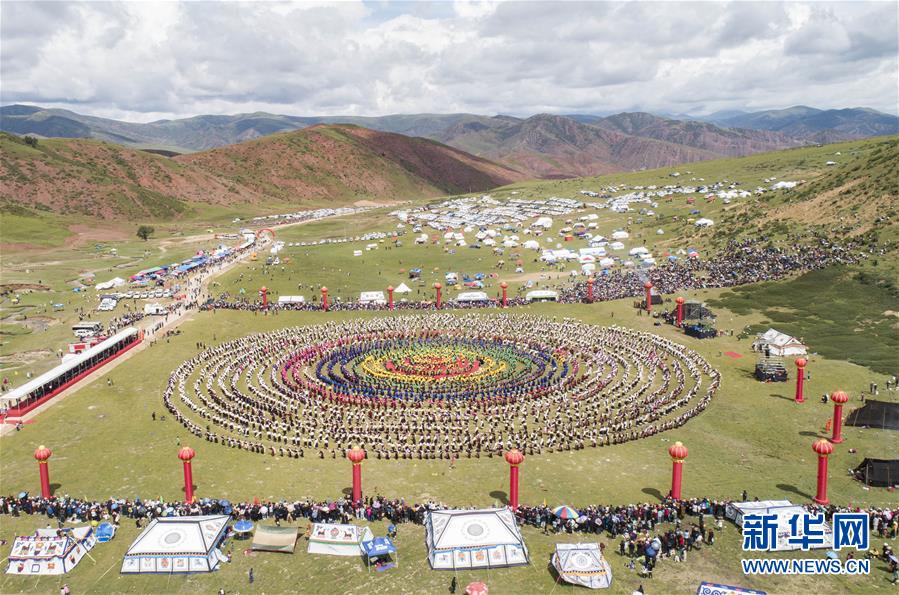 西藏首屆弦子舞展演現(xiàn)場(chǎng)(8月7日攝,無人機(jī)照片)。當(dāng)日,西藏首屆弦子舞展演在昌都市芒康縣舉行。眾多演員同臺(tái)獻(xiàn)藝,表演國家級(jí)非物質(zhì)文化遺產(chǎn)弦子舞,吸引西藏各地的群眾前來觀看。新華社記者孫非攝