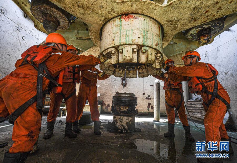 7月27日,工人在位于南海北部海域的勘探三號(hào)鉆井平臺(tái)上作業(yè)。新華社記者蒲曉旭攝