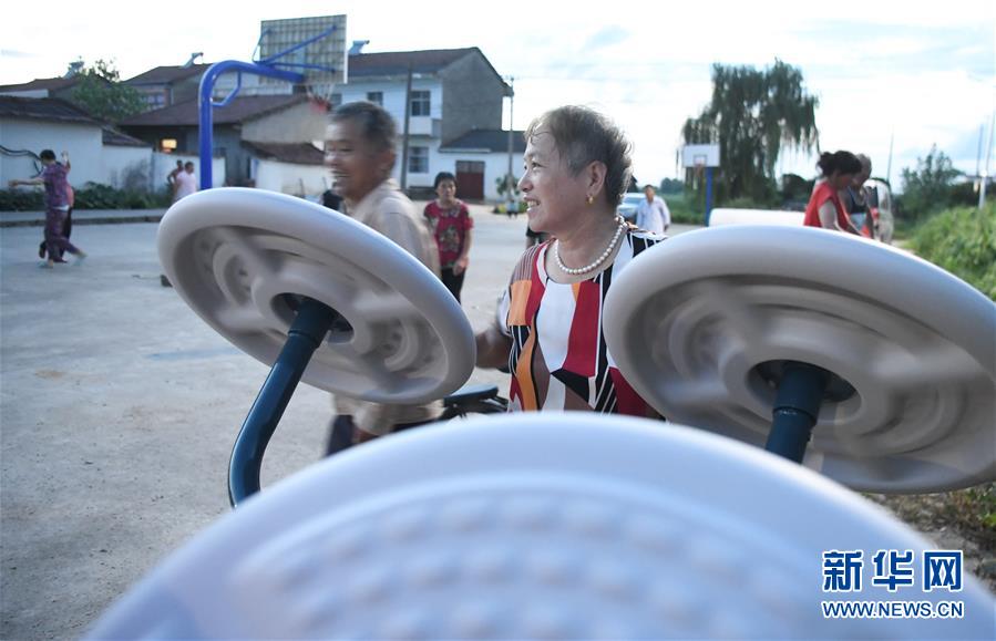 鄂州市長港鎮(zhèn)峒山村村民在鍛煉身體(8月6日攝)。新華社記者 程敏 攝