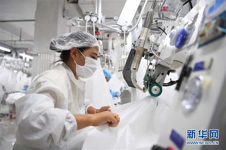 8月9日,甘肅拓奇扶貧車間的員工在服裝加工生產線上作業(yè)。甘肅拓奇扶貧車間位于甘肅省臨夏回族自治州積石山縣,是依托東西部扶貧協(xié)作平臺引進的服裝加工企業(yè)。扶貧車間建成投產以來帶動就業(yè)近300人,其中吸納建檔立卡貧困戶就業(yè)110人,實現了貧困群眾就地就近就業(yè)增收的目的,為助推當地脫貧攻堅及縣域經濟發(fā)展發(fā)揮了重要作用。新華社記者邢廣利攝。