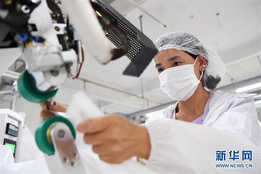 8月9日,甘肅拓奇扶貧車間的員工在服裝加工生產線上作業(yè)。甘肅拓奇扶貧車間位于甘肅省臨夏回族自治州積石山縣,是依托東西部扶貧協(xié)作平臺引進的服裝加工企業(yè)。扶貧車間建成投產以來帶動就業(yè)近300人,其中吸納建檔立卡貧困戶就業(yè)110人,實現(xiàn)了貧困群眾就地就近就業(yè)增收的目的,為助推當?shù)孛撠毠约翱h域經濟發(fā)展發(fā)揮了重要作用。新華社記者陳斌攝。