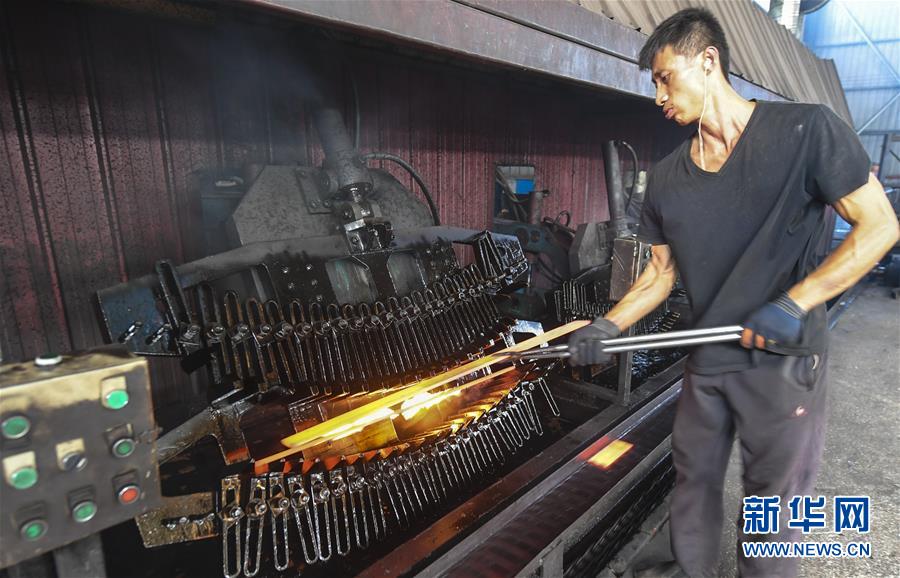 8月9日,河北大城縣南趙扶鎮(zhèn)一家板簧生產(chǎn)企業(yè)員工在板簧淬火生產(chǎn)線上作業(yè)。河北省大城縣南趙扶鎮(zhèn)是該縣農(nóng)機(jī)配件行業(yè)傳統(tǒng)生產(chǎn)基地。疫情以來,南趙扶鎮(zhèn)引導(dǎo)企業(yè)做好風(fēng)險(xiǎn)防范,在農(nóng)機(jī)配件行業(yè)與世界各地客商及品牌開展方式多樣的合作,出口訂單不降反升。截至目前,該縣農(nóng)機(jī)配件行業(yè)出口總銷量達(dá)8000余萬元,較去年同期增長30%。新華社記者李曉果攝。