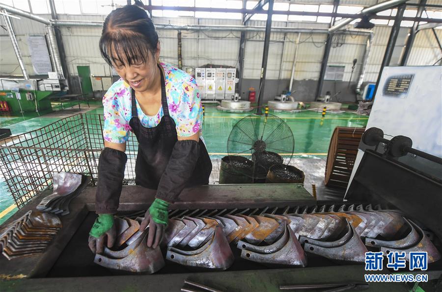 8月9日,河北大城縣南趙扶鎮(zhèn)一家旋耕機刀片生產(chǎn)企業(yè)員工在生產(chǎn)線上作業(yè)。河北省大城縣南趙扶鎮(zhèn)是該縣農(nóng)機配件行業(yè)傳統(tǒng)生產(chǎn)基地。疫情以來,南趙扶鎮(zhèn)引導企業(yè)做好風險防范,在農(nóng)機配件行業(yè)與世界各地客商及品牌開展方式多樣的合作,出口訂單不降反升。截至目前,該縣農(nóng)機配件行業(yè)出口總銷量達8000余萬元,較去年同期增長30%。新華社記者李曉果攝。