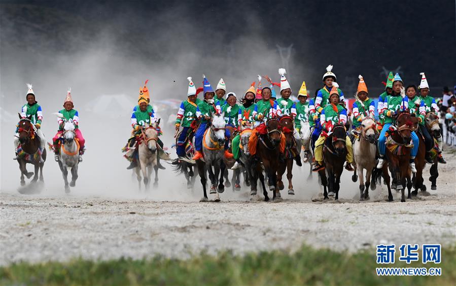 當(dāng)日,“當(dāng)吉仁”賽馬節(jié)比賽之一的五公里馬長跑比賽在西藏拉薩市當(dāng)雄縣賽馬場舉行。一年一度的“當(dāng)吉仁”賽馬節(jié)8月8日在平均海拔4300米的當(dāng)雄縣開幕,來自當(dāng)雄草原的牧民,騎著自家的馬匹參加比賽,策馬揚(yáng)鞭,一決高下。