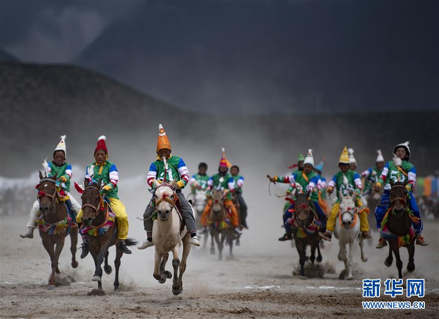 8月10日,騎手馳騁在當(dāng)雄縣賽馬場(chǎng)。新華社記者晉美多吉攝。