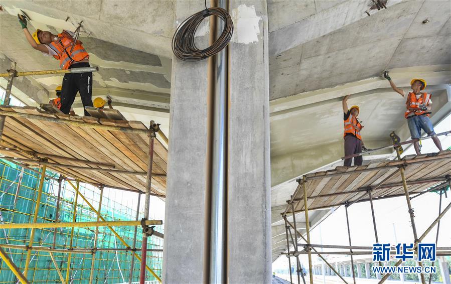 8月10日,工人在京雄城際鐵路霸州北站建設工地為雨棚梁底抹膩子。京雄城際鐵路霸州北站站臺雨棚混凝土結(jié)構(gòu)施工日前全部完成,目前霸州北站已全面轉(zhuǎn)入裝飾裝修和機電安裝階段,預計2020年底投入使用。京雄城際鐵路是連接北京市區(qū)、大興機場和雄安新區(qū)的重要干線。建成后,將進一步完善京津冀區(qū)域高速鐵路網(wǎng)結(jié)構(gòu),便利沿線群眾出行,對于推動京津冀協(xié)同發(fā)展和支撐建設雄安新區(qū)具有重要意義。新華社記者李曉果攝。
