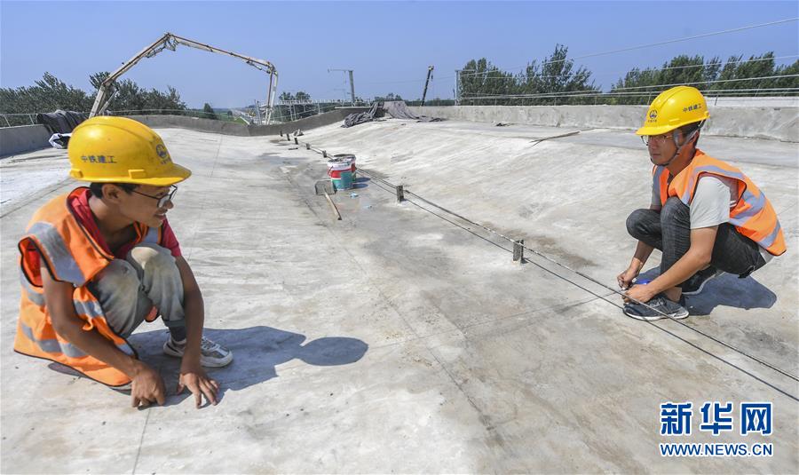 8月10日,工人在京雄城際鐵路霸州北站建設工地進行屋面坡層校核。京雄城際鐵路霸州北站站臺雨棚混凝土結(jié)構(gòu)施工日前全部完成,目前霸州北站已全面轉(zhuǎn)入裝飾裝修和機電安裝階段,預計2020年底投入使用。京雄城際鐵路是連接北京市區(qū)、大興機場和雄安新區(qū)的重要干線。建成后,將進一步完善京津冀區(qū)域高速鐵路網(wǎng)結(jié)構(gòu),便利沿線群眾出行,對于推動京津冀協(xié)同發(fā)展和支撐建設雄安新區(qū)具有重要意義。新華社記者李曉果攝。
