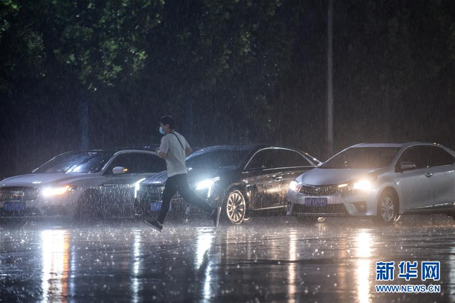 8月12日,北京市大興區(qū)亦莊鎮(zhèn),一名沒(méi)帶雨具的市民在雨中奔跑。新華社記者 彭子洋 攝