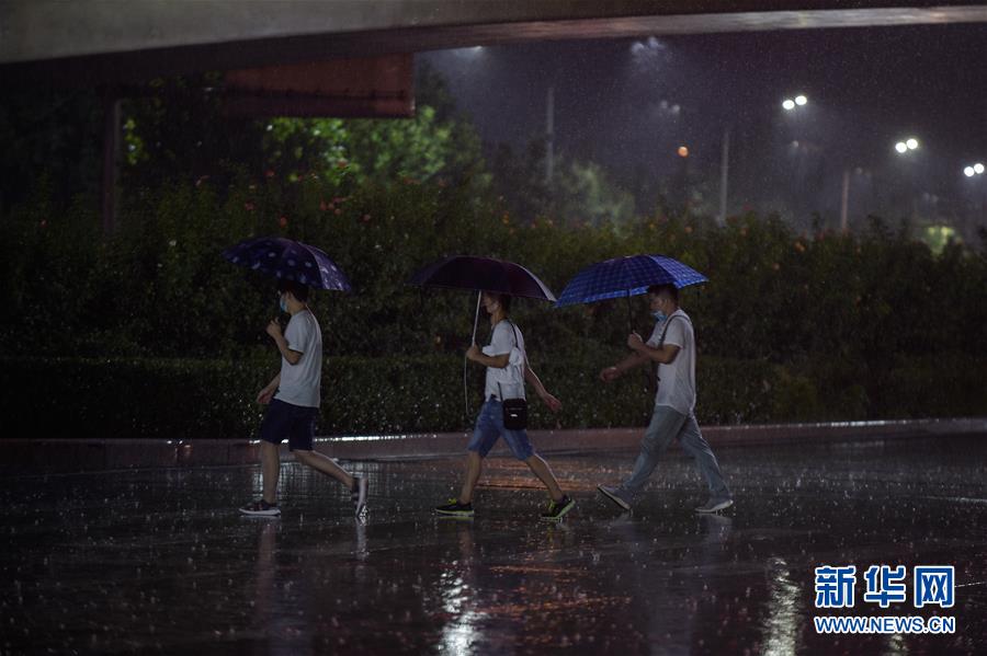 8月12日,北京市大興區(qū)亦莊鎮(zhèn),市民冒雨出行。新華社記者 彭子洋 攝