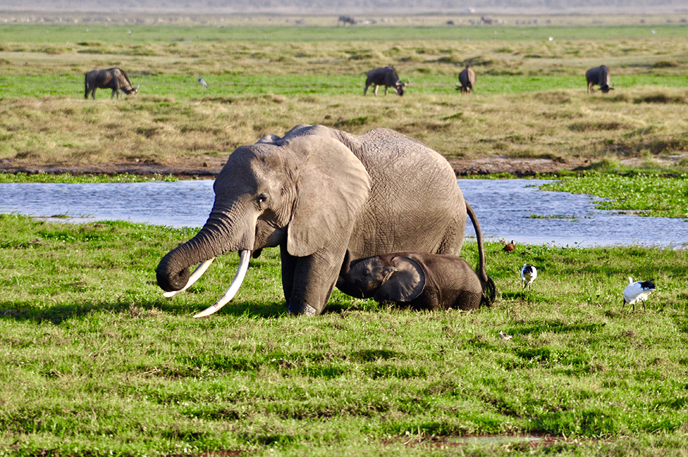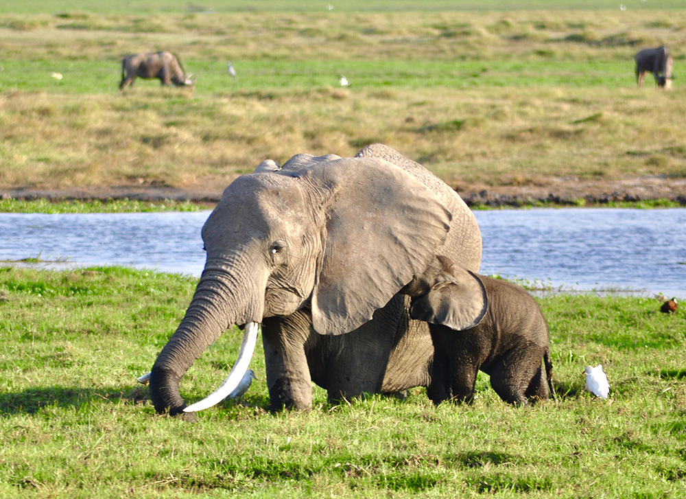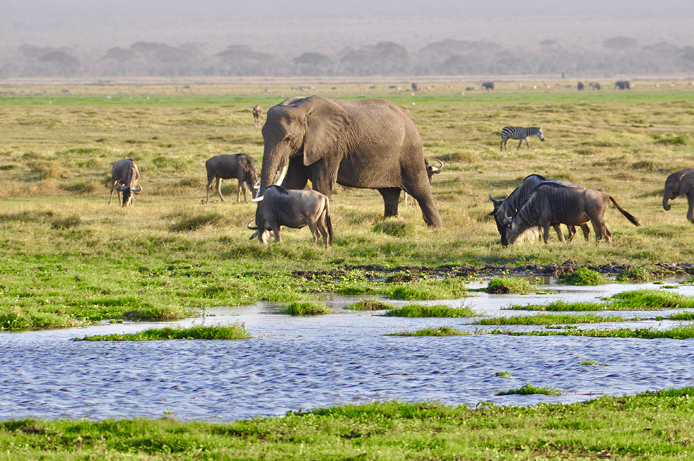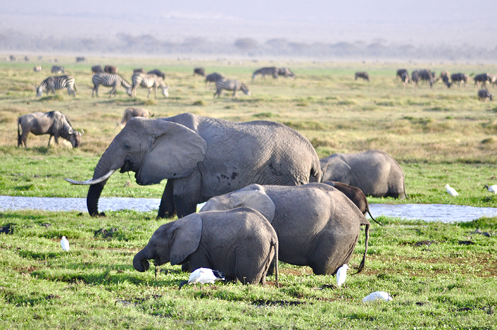 肯尼亞?wèn)|南部,與坦桑尼亞接壤的安博賽利國(guó)家公園,距內(nèi)羅畢240公里,因水草豐美而成為野生非洲大象的樂(lè)園。