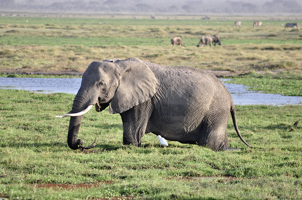 安博塞利國家公園的象群屬于草原象。圖為野生大象家園里的大象。李仁奇 攝