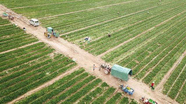 6月10日,在大同鎮(zhèn)馬會(huì)村,農(nóng)民駕駛小麥秸稈打捆機(jī)在麥田作業(yè)。