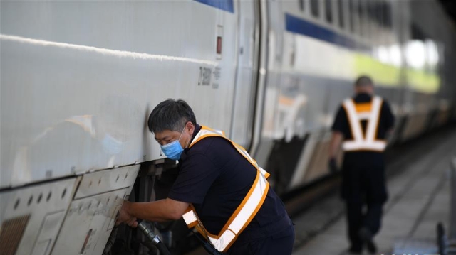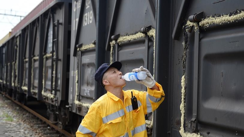 在中國(guó)鐵路上海局集團(tuán)有限公司杭州北車輛段合肥運(yùn)用車間,386名列車檢修工人頭頂烈日?qǐng)?jiān)守崗位,確保暑運(yùn)列車的安全運(yùn)行。