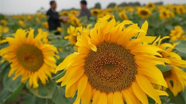 初秋時(shí)節(jié),位于甘肅省白銀市景泰縣寺灘鄉(xiāng)的十萬畝向日葵競(jìng)相綻放,金黃的葵花張開“笑臉”,迎接豐收。