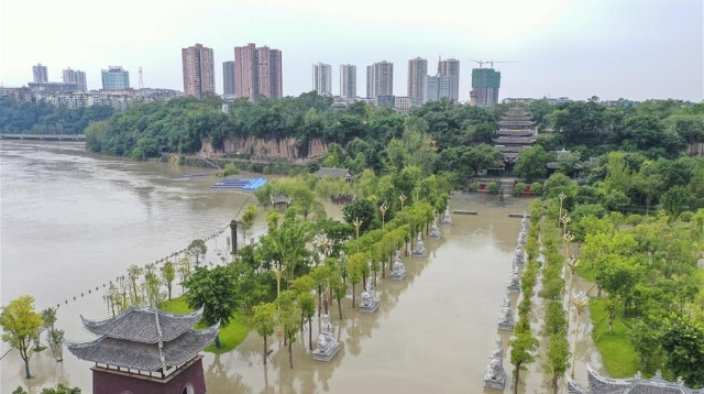 受強(qiáng)降雨影響,涪江潼南段迎來過境洪水。截至12日下午5時(shí),涪江潼南城區(qū)段最高水位238.5米,超警戒水位0.5米,低于保證水位(240米)。