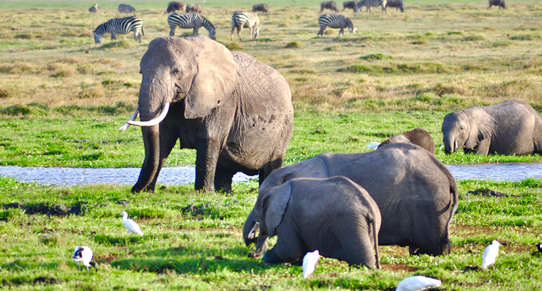 肯尼亞東南部,與坦桑尼亞接壤的安博賽利國(guó)家公園,距內(nèi)羅畢240公里,因水草豐美而成為野生非洲大象的樂園。