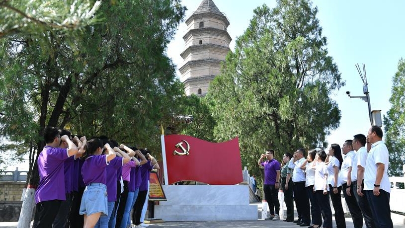 臨近“七一”,革命圣地延安的黨員干部紛紛來(lái)到紅色景區(qū),舉行主題黨課、現(xiàn)場(chǎng)教學(xué)、重溫入黨誓詞等活動(dòng)。