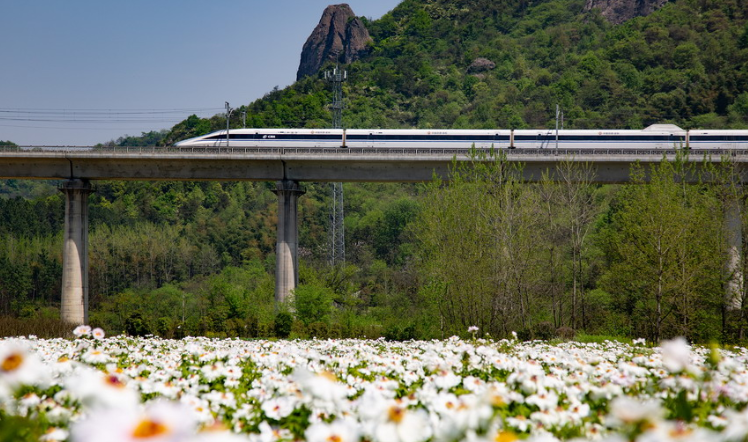 隨著氣溫回升,安徽省銅陵市境內(nèi)的鳳丹競(jìng)相綻放,高鐵列車穿行其間,成為春日里一道美麗的風(fēng)景線。