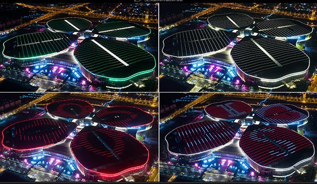 夜幕下的國家會展中心 “四葉草”燈光璀璨