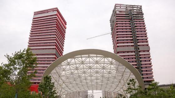 5月5日,武漢金銀潭大道旁,兩棟正在建設(shè)中的大樓外觀(guān)奇特,遠(yuǎn)遠(yuǎn)看去就象一本一本紅色的書(shū)疊在一起。