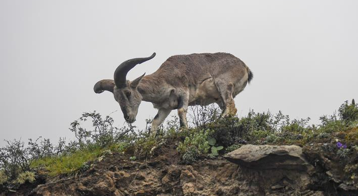 在西藏山南市洛扎縣色鄉(xiāng)海拔4000米左右的盤山路上,一群巖羊悠閑地吃著野果青草,完全不介意來往的車輛、行人和近在咫尺的鏡頭。