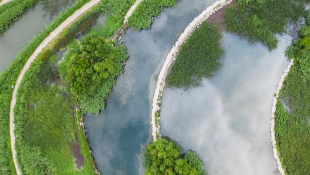 六盤水明湖國家濕地公園風景(無人機照片,6月17日攝)。