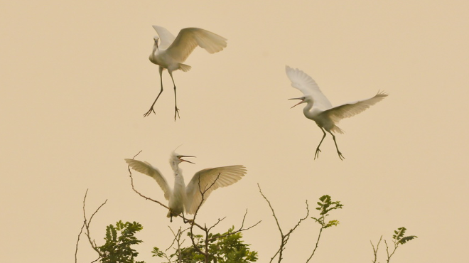 山東青島“鷺舞”林間 宛如一幅寫意山水畫
