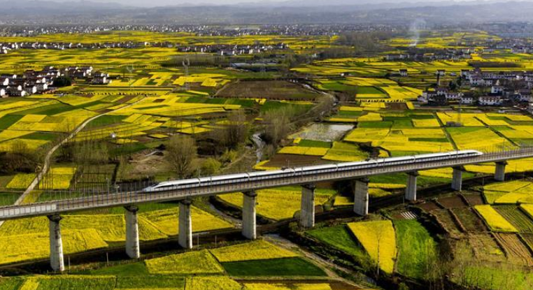 近日,秦嶺南麓的陜西省漢中市洋縣14萬畝油菜花競相開放,美景如畫。
