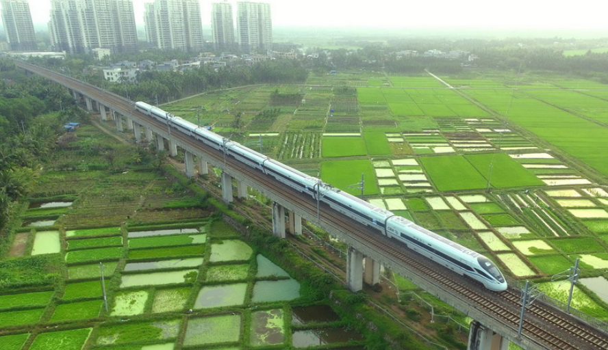 2020年3月17日,海南環(huán)島鐵路一列動(dòng)車從春光明媚的瓊海城區(qū)經(jīng)過。