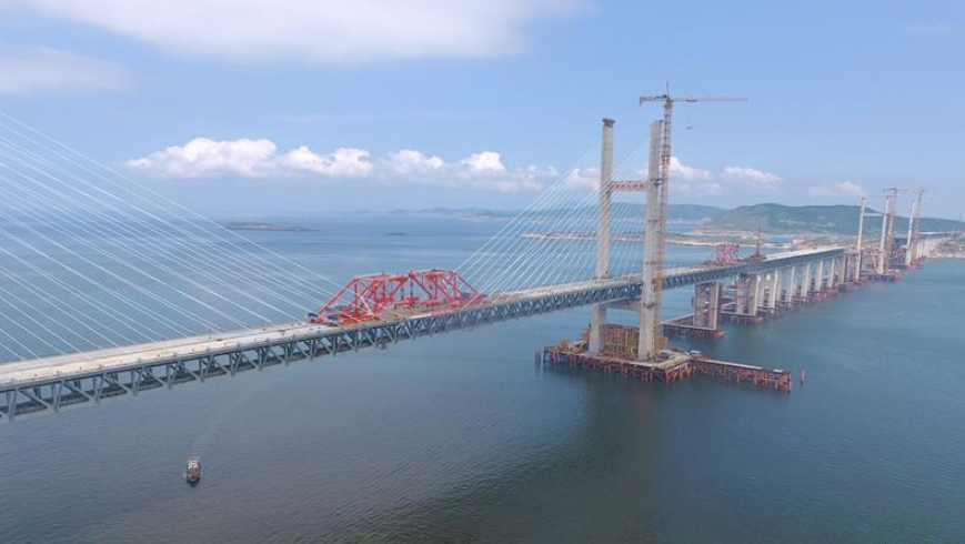 當(dāng)日,總長(zhǎng)為16.34公里的福平鐵路平潭海峽公鐵大橋鋪軌正式啟動(dòng)。