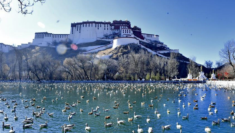 冬日,西藏拉薩市布達(dá)拉宮腳下的龍王潭公園成了鳥的“天堂”。數(shù)不盡的斑頭雁、赤麻鴨、紅嘴鷗在這里嬉戲、覓食。