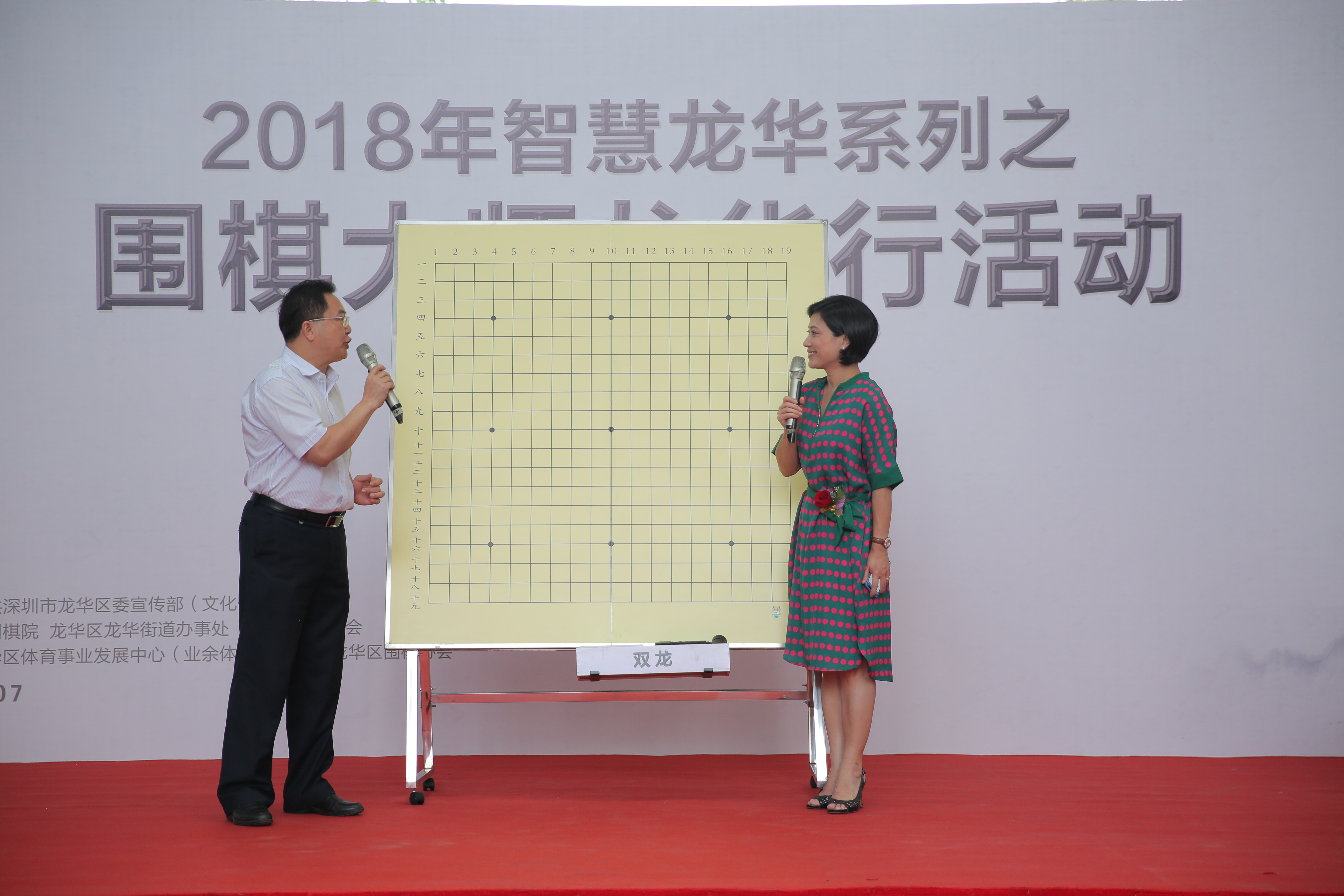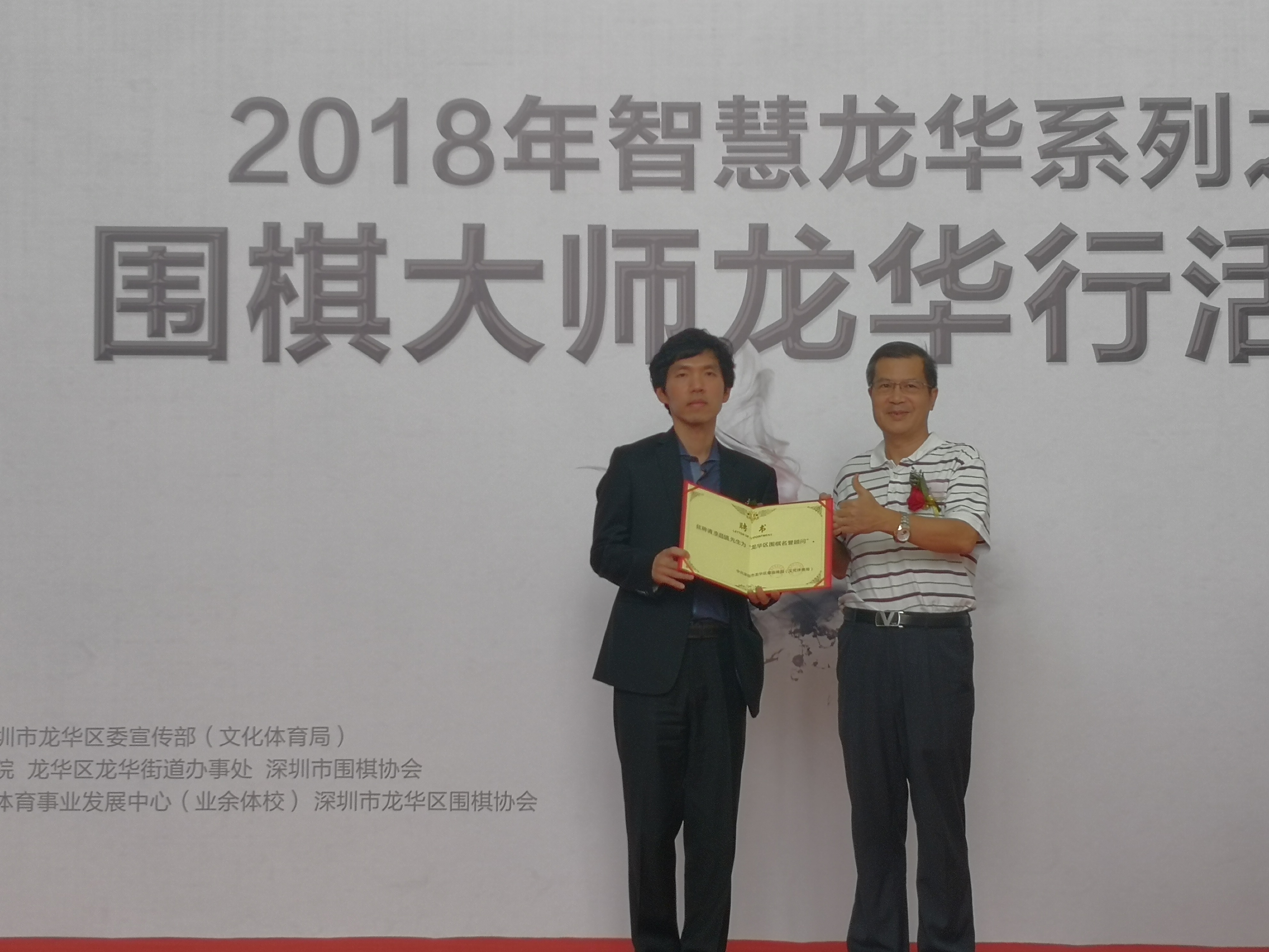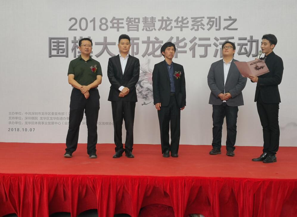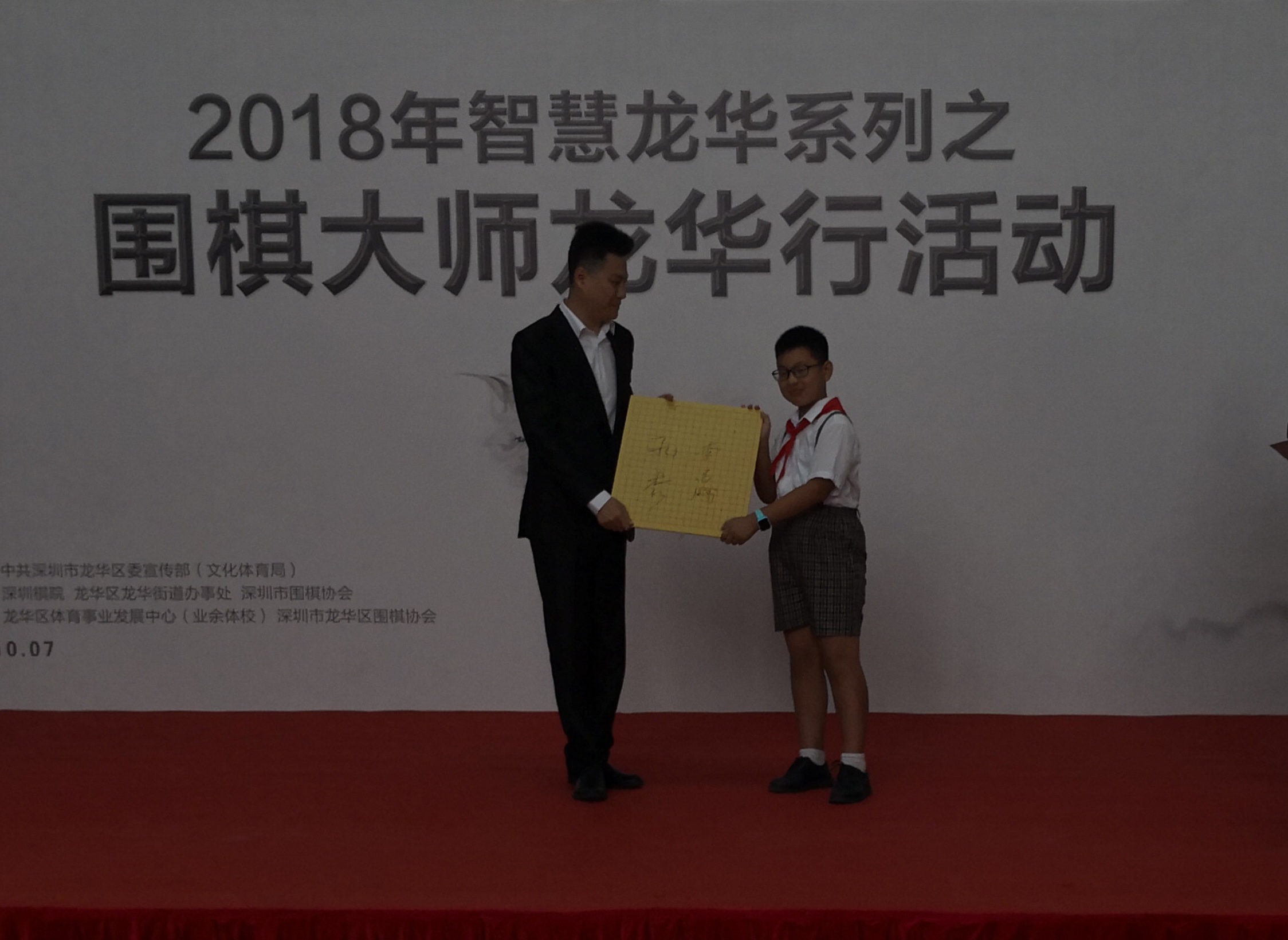 開幕式上,龍華區(qū)委副書記苗寧禮,龍華區(qū)委常委、宣傳部長黃啟鍵及區(qū)文化體育局相關負責人等在百忙中前來為“智慧龍華”捧場加油?;顒釉谳p松熱鬧的歌舞中拉開帷幕,文化體育局負責人在致辭中對諸位圍棋大師的到來表示熱烈的歡迎,對活動擴大中華圍棋文化的傳播,推動龍華區(qū)圍棋的發(fā)展給予了充分的肯定。隨后,黃啟健常委代表龍華區(qū)聘請李昌鎬大師擔任龍華區(qū)圍棋發(fā)展的名譽顧問并頒發(fā)了證書,李昌鎬則回贈了簽名棋盤。緊接著,孔杰老師也給參加活動的小棋手贈予了簽名棋盤。在廣東圍棋總冠軍佟云老師簡要介紹李昌鎬、孔杰的精采圍棋經(jīng)歷之后,活動主持人還現(xiàn)場采訪了李昌鎬、孔杰,就兩人圍棋從業(yè)過程中的難記經(jīng)歷、精采賽事以及對人工智能圍的展望等進行了提問,兩位大師的回答坦率、誠懇,贏得了現(xiàn)場觀眾的陣陣掌聲?;顒拥母叱笔抢畈€、孔杰、車澤武、張亞博四位老師與龍華區(qū)的圍棋愛好者進行多面打的活動,梁偉棠九段和徐瑩老師還進行掛盤講解。