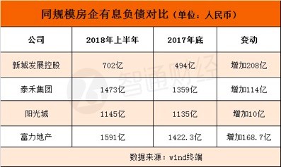 富力地產(chǎn)財(cái)報(bào)數(shù)據(jù)顯示,2015年至2018年三季度,富力地產(chǎn)的負(fù)債總額分別達(dá)1345億元、1795億元、2332億元及2863億元。其中,有息負(fù)債已經(jīng)高達(dá)1600逾億,對比同規(guī)模的房企,這一數(shù)據(jù)居于同水平房企高位。
