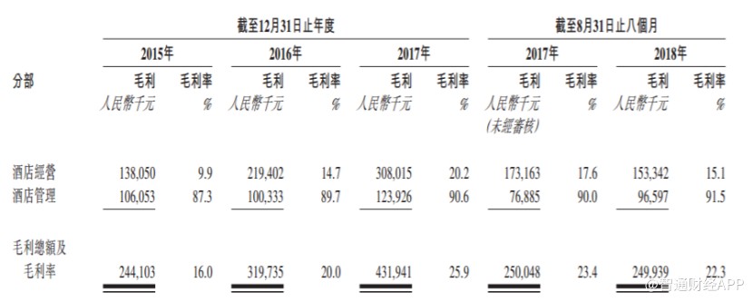 招股書顯示,截至2018年8月底,公司酒店經營業(yè)務下擁有31家酒店,其中29家租賃酒店和2家自營酒店;公司酒店管理業(yè)務下擁有109家酒店,其中96家為全方位服務管理酒店及13家特許經營酒店。