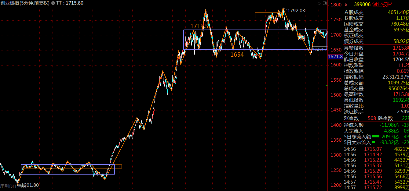 創(chuàng)業(yè)板這里走弱了已經(jīng),上周一、周二的調(diào)整打到了中樞下軌,這是一次警告,上拉后始終不能站上中樞上軌,是為弱勢(shì),本周關(guān)注1654點(diǎn)的支撐,謹(jǐn)防第三類賣點(diǎn)的出現(xiàn)。