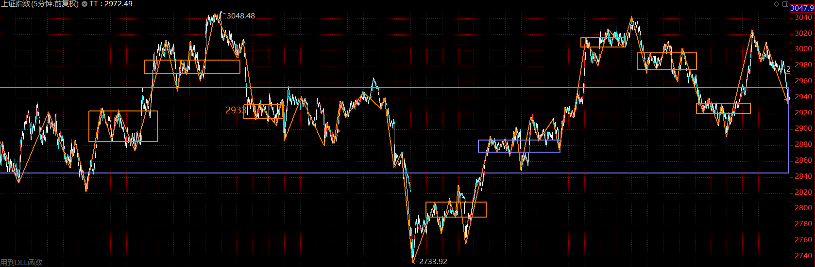 結(jié)構(gòu)上看,上證指數(shù)已跌回了大中樞內(nèi)部,市場情況不樂觀,大概率已經(jīng)確認(rèn)上周一的高點(diǎn)為第二類賣點(diǎn)。那么這里應(yīng)該轉(zhuǎn)向防守為主,反彈中應(yīng)適度降低倉位,觀望等待。關(guān)注壓力位2970點(diǎn)附近,可據(jù)此高拋,靜待市場回落后再行布局。