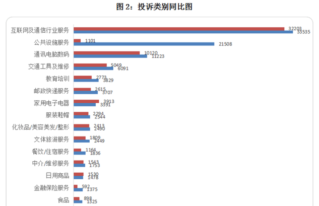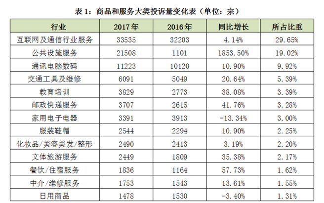 互聯(lián)網(wǎng)及通信行業(yè)服務(wù)、公共設(shè)施服務(wù)、通訊電腦數(shù)碼投訴量位居前三,成為消費者最鬧心的三大消費領(lǐng)域。