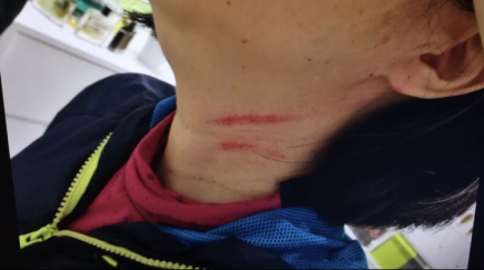 事后,羅小姐的母親張女士很快打電話報了警。張女士今年52歲,女兒提到母親的傷勢非常心疼,“我母親頭部腫起,脖子上有三處抓痕(有出血),手指也被抓傷,之后幾天右側(cè)腰部和右膝都感覺疼痛?!?/p>