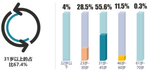 本次調(diào)研中,家政公司消費者中,31歲-45歲是主要消費者,占比55.6%,31歲以上的消費者占比為67.4%。;57.4%的受訪者學(xué)歷為本科/大專及以上 。