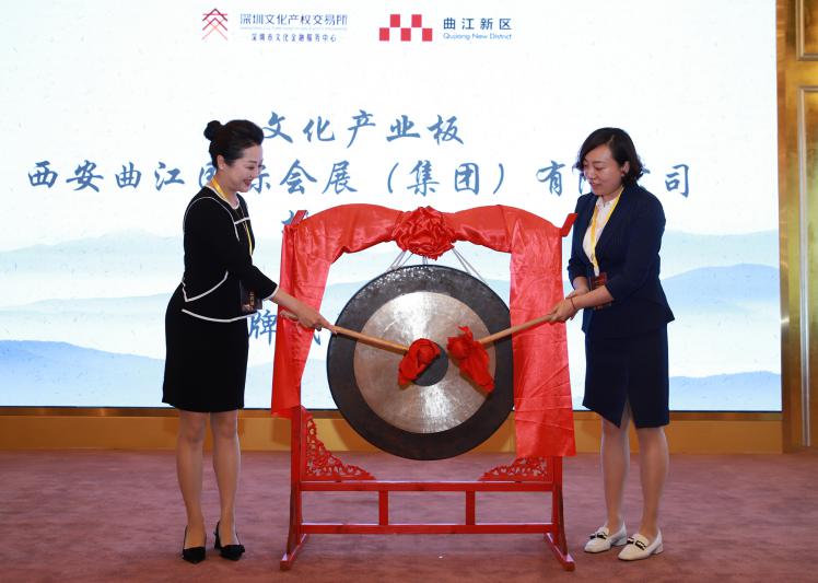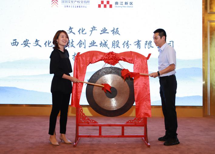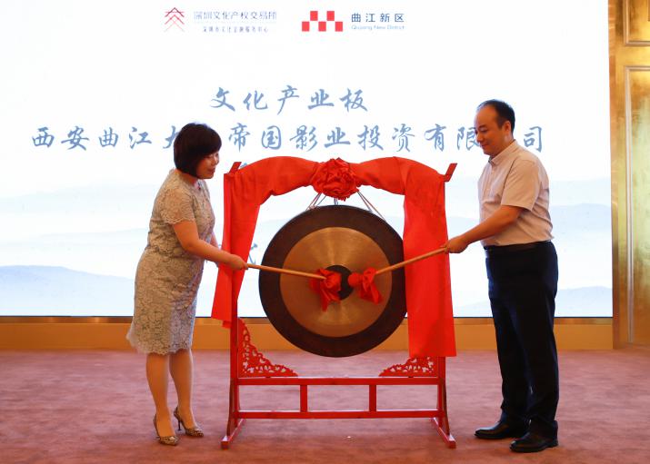 會(huì)上深圳文交所與曲江新區(qū)管委會(huì)簽署戰(zhàn)略合作及業(yè)務(wù)合作協(xié)議,5家掛牌企業(yè)分別是西安曲江大秦帝國(guó)影業(yè)投資有限公司、西安文化科技創(chuàng)業(yè)城股份有限公司、西安曲江國(guó)際會(huì)展(集團(tuán) )有限公司、西安曲江影視投資 (集團(tuán) )有限公司、西安曲江出版?zhèn)髅酵顿Y集團(tuán)有限公司并且現(xiàn)場(chǎng)鳴鑼?zhuān)晒炫啤拔幕a(chǎn)業(yè)板”。