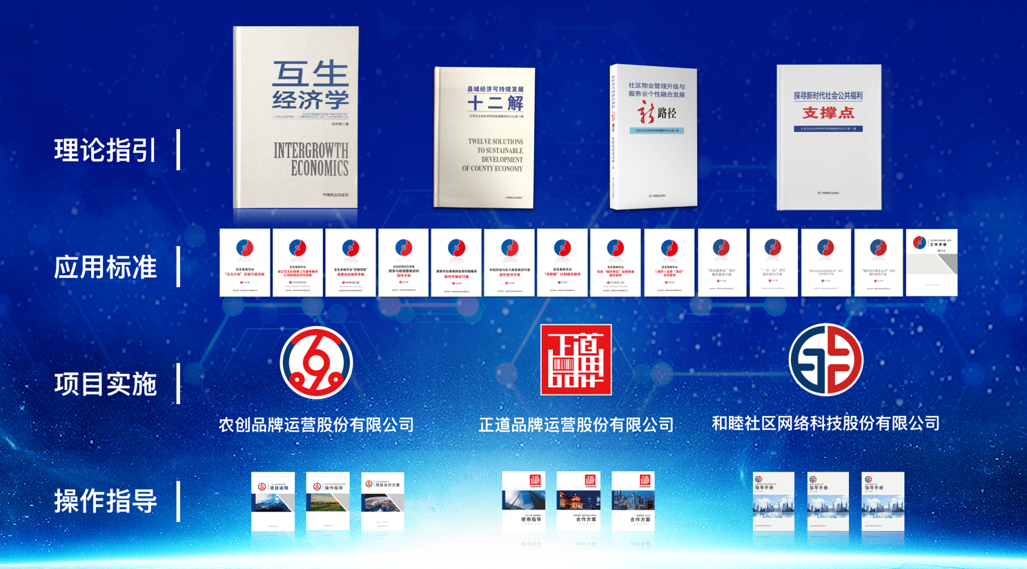 和睦社區(qū)網(wǎng)絡(luò)科技股份有限公司以以《社區(qū)物業(yè)管理升級與服務(wù)業(yè)個性融合發(fā)展新路徑》為理論指導(dǎo),面向8萬社區(qū),致力于為房地產(chǎn)開發(fā)商轉(zhuǎn)型,為物業(yè)管理公司提供升級服務(wù),為社區(qū)居民提供創(chuàng)業(yè)就業(yè)機(jī)會,發(fā)展周邊服務(wù)業(yè)產(chǎn)業(yè)鏈;正道品牌運營股份有限公司綜合運用了幾個方面的理論研究成果,推出了廠家直供渠道,搭建可溯源的分享代理銷售新模式,為企業(yè)的品牌產(chǎn)品爭取市場定價權(quán),掌握市場主動權(quán),建立正道品牌渠道運營管理體系,全面提升品牌企業(yè)及其產(chǎn)品的知名度,杜絕假冒偽劣產(chǎn)品,為品牌企業(yè)保駕護(hù)航,為創(chuàng)業(yè)者輕松創(chuàng)業(yè)提供路徑。
