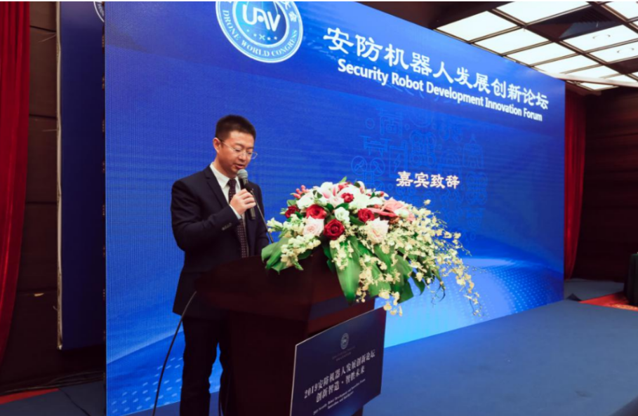 隨后由公安部裝財(cái)局原副局長(zhǎng)、公安部警用航空管理辦公室原主任陶軍生發(fā)表大會(huì)致辭。在致辭中,陶軍生根據(jù)現(xiàn)今5G時(shí)代的快速發(fā)展結(jié)合安防機(jī)器人的應(yīng)用范圍和發(fā)展趨勢(shì)進(jìn)行大體闡述分析,并表明未來安防機(jī)器人市場(chǎng)前景非常壯大。