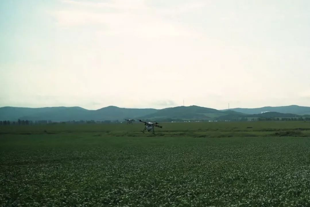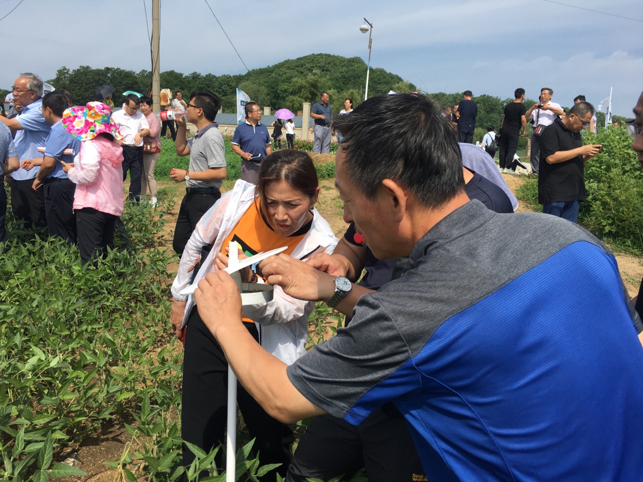 開班儀式前,參會領(lǐng)導(dǎo)、專家及各省市參會代表現(xiàn)場觀摩位于敦化市鴻發(fā)現(xiàn)代生態(tài)農(nóng)場的全國生物食誘劑防控大豆食心蟲技術(shù)試驗示范區(qū),在示范區(qū)現(xiàn)場觀摩無人機噴灑生物食誘劑。