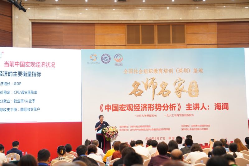 據(jù)介紹,總會依托民政部社會組織服務(wù)中心授予的“全國社會組織教育培訓(深圳)基地”設(shè)立“名師名家講學堂”,設(shè)立兩年多來先后邀請了王石、馬蔚華、馮侖、唐杰、印順等眾多大咖“頭腦風暴”、分享智慧,得到社會各界的普遍認可。今年以來,作為改革排頭兵的深圳再次被委以重任,確定為中國特色社會主義先行示范區(qū),深圳面臨著面臨著全新的挑戰(zhàn)和巨大的機遇??倳鳛椤皡f(xié)會的協(xié)會”,深諳深圳社會組織及企業(yè)的迫切需求,為此講學堂特別邀請深圳匯豐商學院創(chuàng)院院長海聞教授為大家分析中國的宏觀經(jīng)濟形勢,幫助深圳企業(yè)家登高望遠、把握形勢、尋找方法、積極“迎戰(zhàn)”,增強他們憂患意識的同時也增強其克服困難的信心。