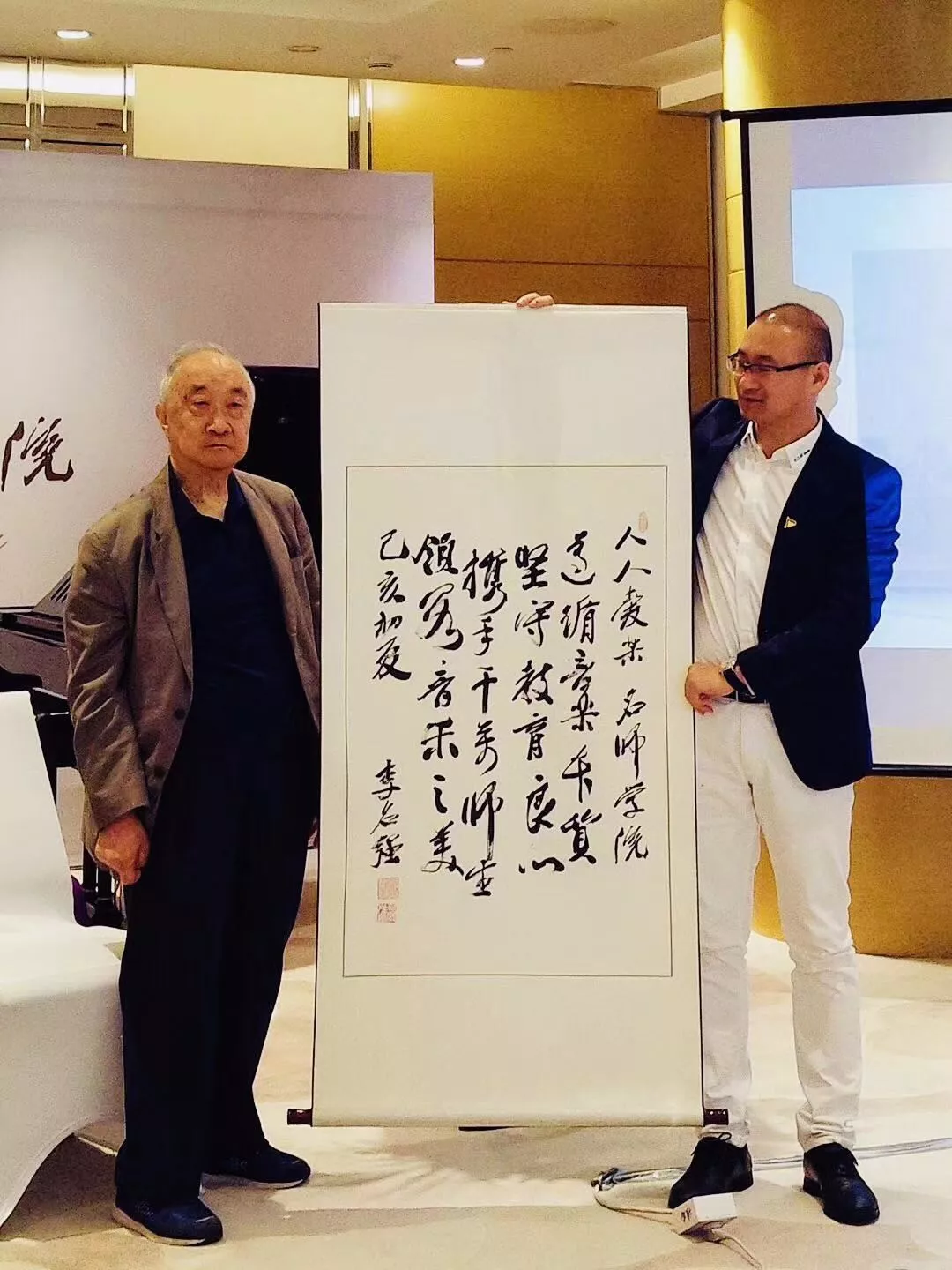 與會當(dāng)日,國際著名鋼琴家李名強教授、著名鋼琴家楊韻琳教授、中國音樂學(xué)院鋼琴系前主任張維教授、奧地利著名鋼琴家赫墨慈貝爾格教授等悉數(shù)出席,各位業(yè)界大咖發(fā)表了熱情洋溢的致辭,李明強教授還特意為本次活動獻上個人墨寶,恭?!叭巳藧蹣贰っ麕煂W(xué)院”的啟幕。
