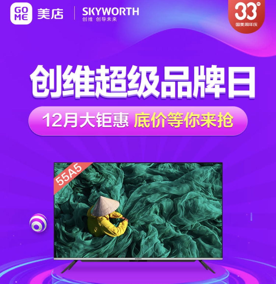 國美33周年慶期間,創(chuàng)維超級品牌日也在國美美店同步開啟,相比于其他品牌,創(chuàng)維電視沒有那么多活動,僅僅采用了價(jià)格直降的方式,簡單粗暴,直接購買即可。