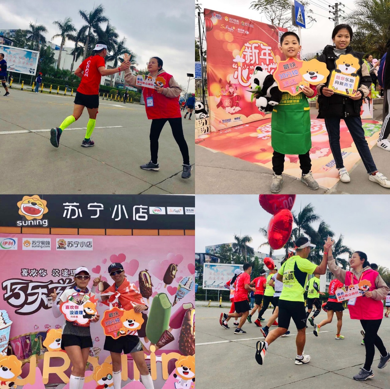 賽事由上午7:30持續(xù)到下午13:30。不到3小時(shí),終點(diǎn)處迎來(lái)了第一名沖刺!參賽者李棟興以2:25:13的優(yōu)異成績(jī)打破賽會(huì)紀(jì)錄,獲得了2020大鵬萬(wàn)科新年馬拉松的冠軍,現(xiàn)場(chǎng)賽道周邊滿是為他歡呼的聲音,相信這是他送給自己的最好的新年禮物。上午10點(diǎn)之后,其他參賽者也陸續(xù)抵達(dá)終點(diǎn)——大鵬文化廣場(chǎng),廣場(chǎng)內(nèi)設(shè)置了參賽者冰水沐足區(qū),更衣室,包裹領(lǐng)取處,還有各種贊助商的趣味互動(dòng)區(qū),已經(jīng)完成比賽的跑者可以在此處休息放松。其中,蘇寧在終點(diǎn)處設(shè)置了免費(fèi)美食領(lǐng)取,搖一搖抽大獎(jiǎng)等趣味互動(dòng),吸引了眾多觀眾前來(lái)打卡。(通訊員/黃敏君)