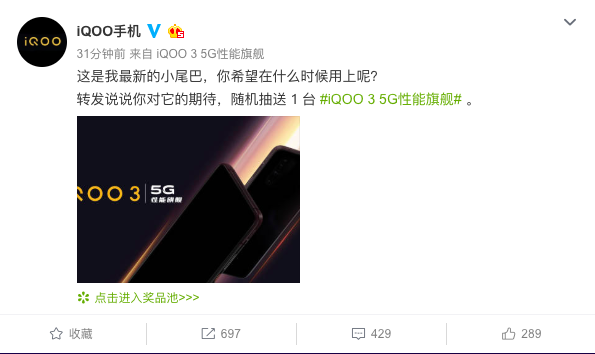 不僅如此,iQOO官博還在近期發(fā)布了一條“ UFS3.1用起來(lái)真快,二月見(jiàn)哦!”的微博,進(jìn)一步肯定了iQOO3的即將到來(lái),并將搭載UFS3.1頂級(jí)閃存芯片的事實(shí)。這是繼iQOO Neo855版采用UFS3.0閃存領(lǐng)先業(yè)界后的再次升級(jí),進(jìn)一步提升和鞏固了iQOO3的5G性能旗艦定位。