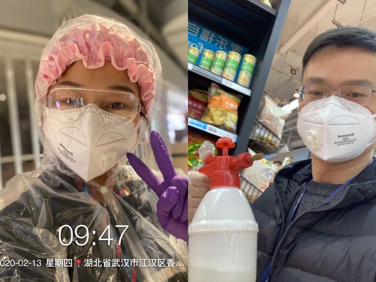 在武漢家樂福“戰(zhàn)疫”一線的夫妻檔