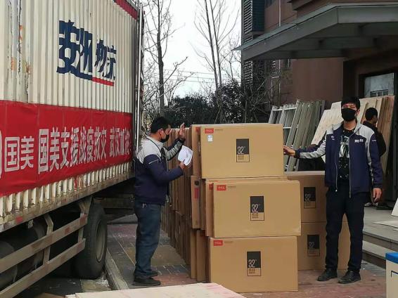 2月13日下午,國美還有援建武漢市九醫(yī)院東院A區(qū)方艙醫(yī)院的任務,捐助200臺電視并完成配送。為了保證盡快完成如此大需求量的配貨,國美緊急調配了包括國美、TCL及海爾品牌電視,從武漢倉庫直接配送到方艙醫(yī)院,并按計劃于14日安裝調試。